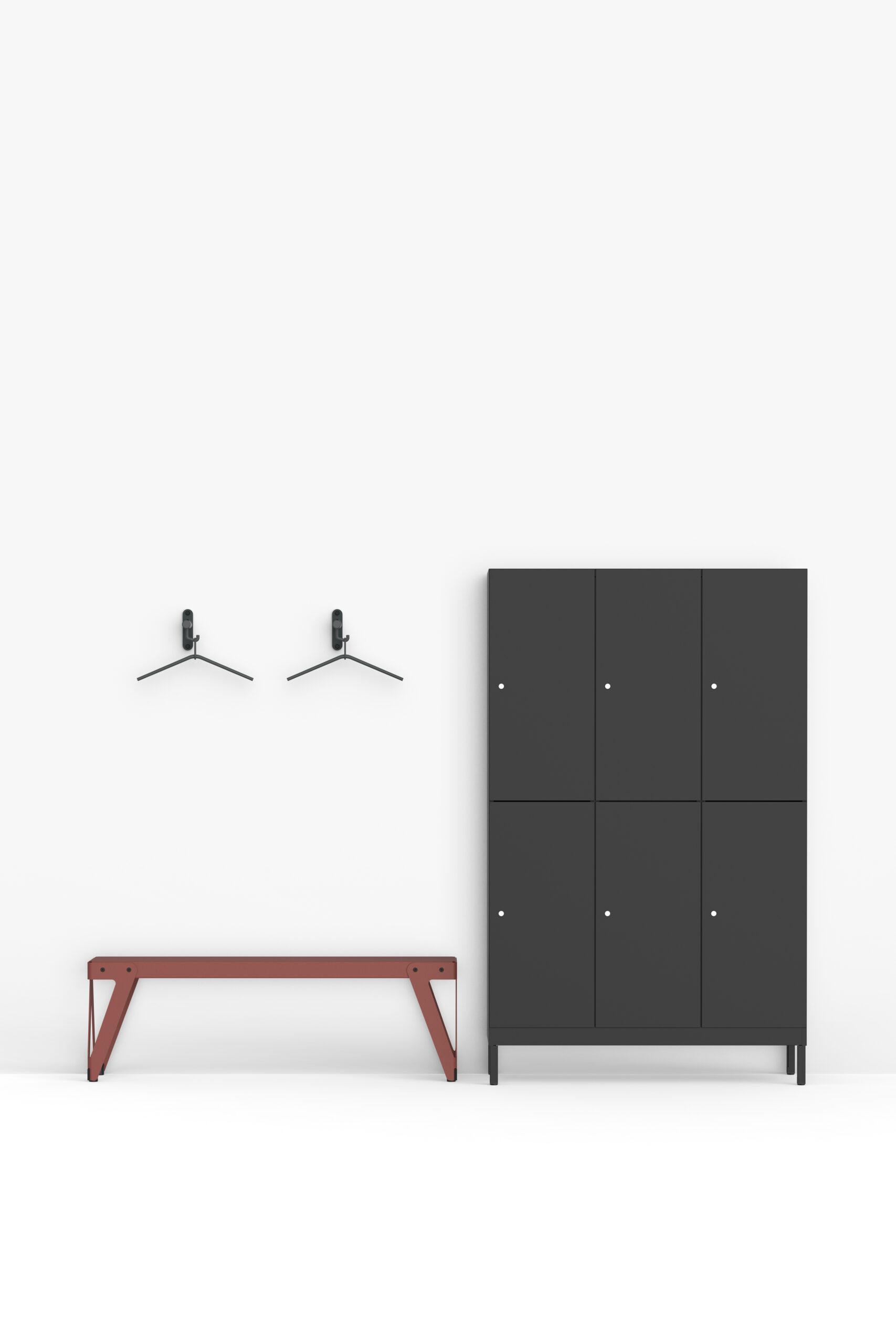 The models in the cloakroom series Tertio designed by Gerard Kerklaan are striking due to their transparent design. This makes them easy to combine. The same goes for Tertio 30, the coat hanger that fits in with the cloakroom racks in the series. Tertio 30 is available as a separate hanger or with an anti-theft loop.