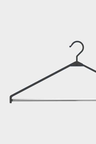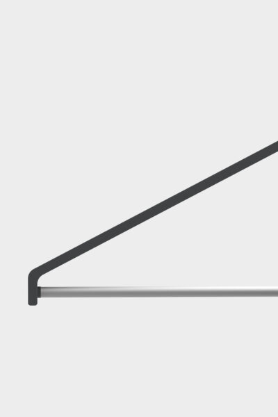 The Universum 20 coat hanger has a striking functional and clean design. The dark grey plastic coat hanger with aluminium trouser rod has a wide hook, which makes the coat hanger self-aligning. Universum 20 can be hung in a suspension eye or on a round bar of maximum Ø 30 mm.