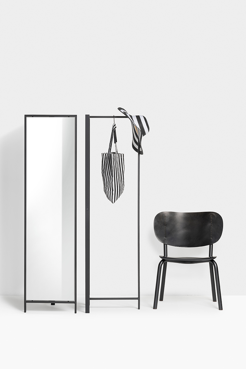 Is it a cloakroom? Is it a mirror? Is it a partition wall? No, it is Frame DV. A smart coatrack with many faces. Combine the graphic design of the design duo KASCHKASCH with corresponding mirror or panel and style every space to your needs.