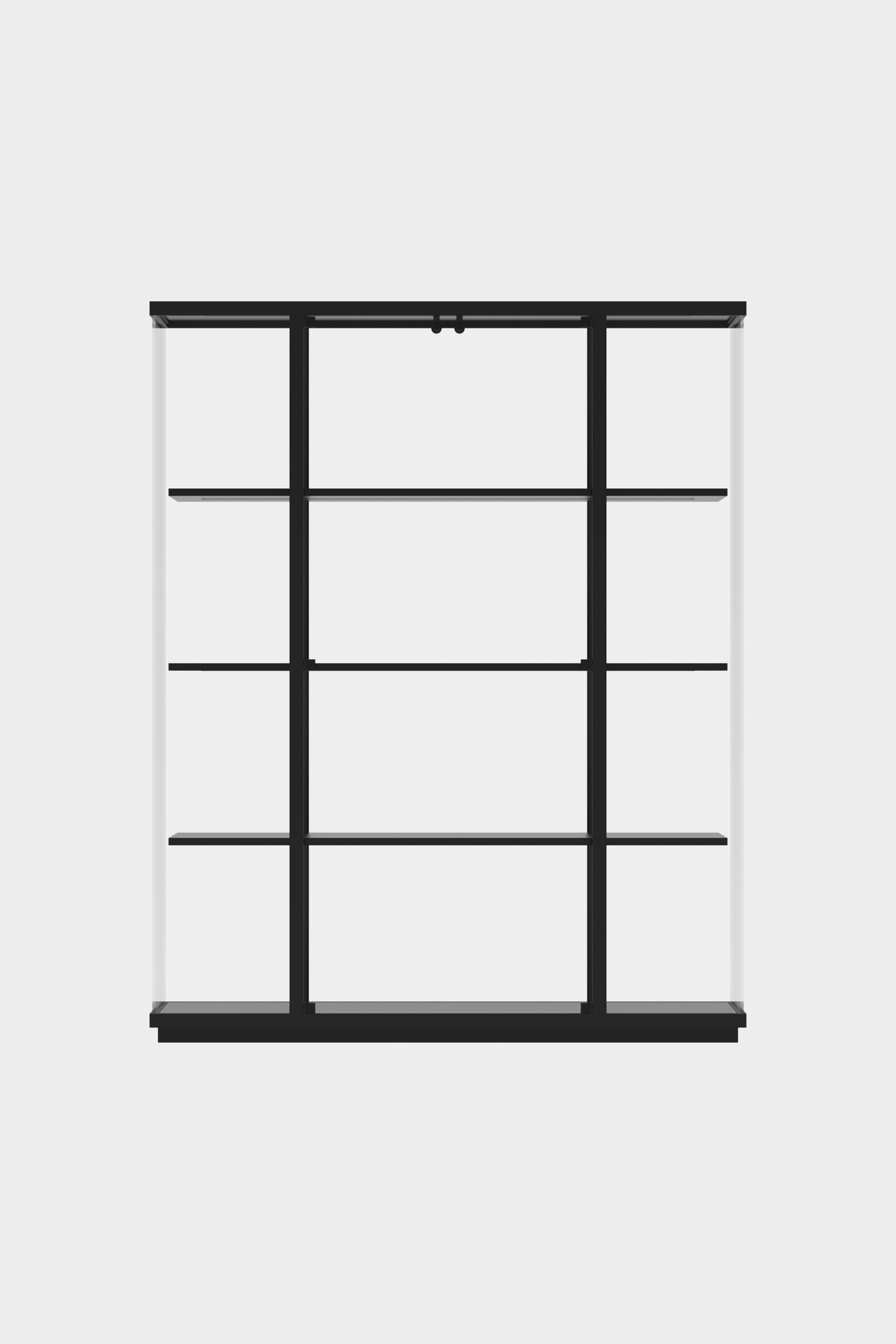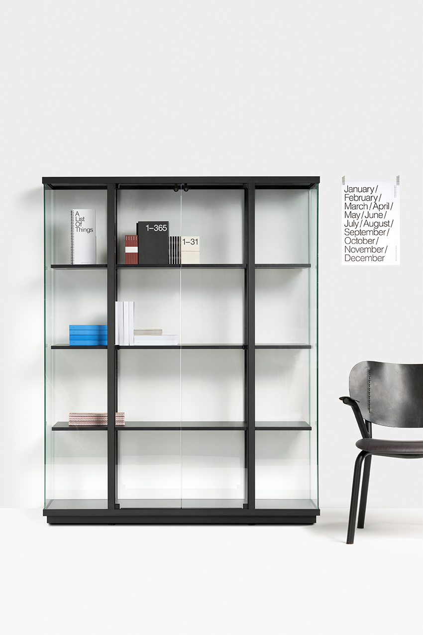 Make an industrial statement with the Stolp display cabinet. The cool design by designer Carolina Wilcke exudes quality, without detracting from the contents. The display cabinet of glass and powder-coated aluminium is equipped with built-in LED strips and height-adjustable shelves.