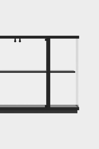 Stolp has a space between the shelf and the glass, which creates the illusion that the shelves are floating. The shelves are also fitted with LED strips, so everything on display is shown in the best light.