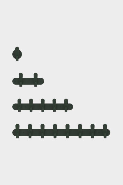 Raven black, chalk white, pine green or maroon red. Mix and match the wall mounted coat racks in multiple colours for a playful effect. Or choose for harmony with the use of one colour.