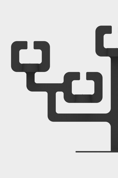 Each Bonsai is laser-cut from a metal sheet. Vervolgens buigen we de basis om de platte uitsnede om te vormen tot een driedimensionale vorm. Als finishing touch krijgt Bonsai een poedercoating, waardoor het lijkt alsof de kandelaar uit één stuk is gesmeed.