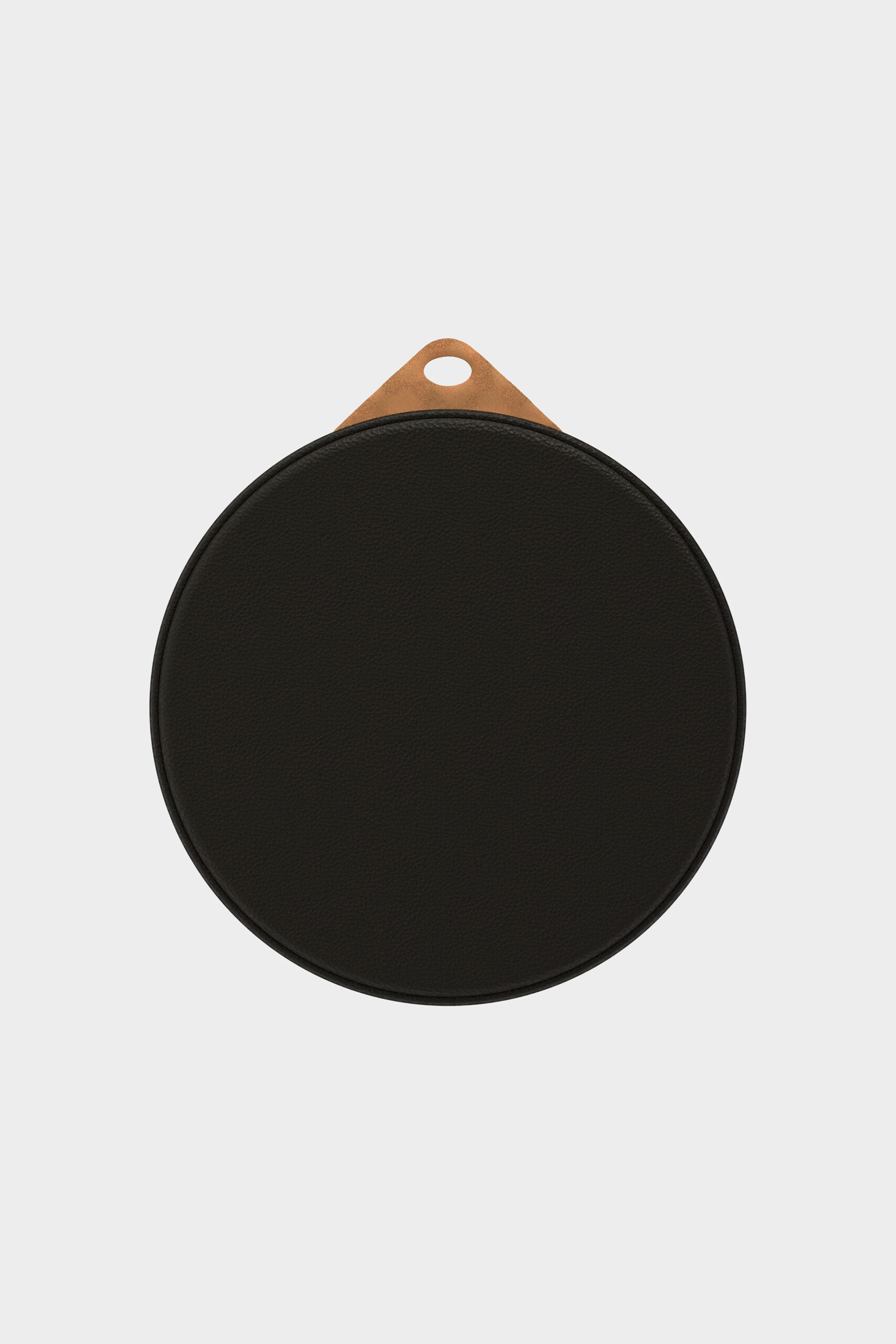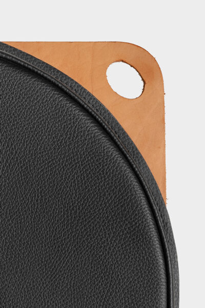 Het kussen is voorzien van een stevig lipje van zadelleer met een gat om het op te hangen of mee te nemen.