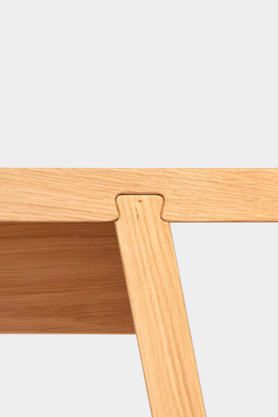 Gemaakt van zijdezacht Europees eikenhout is de Dovetail-bank een warme, uitnodigende aanvulling op elk interieur, thuis of op kantoor. De strakke lijnen zijn opvallend modern, maar de eenvoud van de vorm geeft de bank een tijdloos karakter. Wie goed kijkt, ziet dat de bank gebruikmaakt van een eeuwenoude techniek: de zwaluwstaartverbinding. Door het in elkaar grijpen van nok en groef ontstaat een sterke maar flexibele verbinding tussen afzonderlijke houten delen. De bank zet deze houtverbinding centraal en geeft de zwaluwstaarten de hoofdrol.